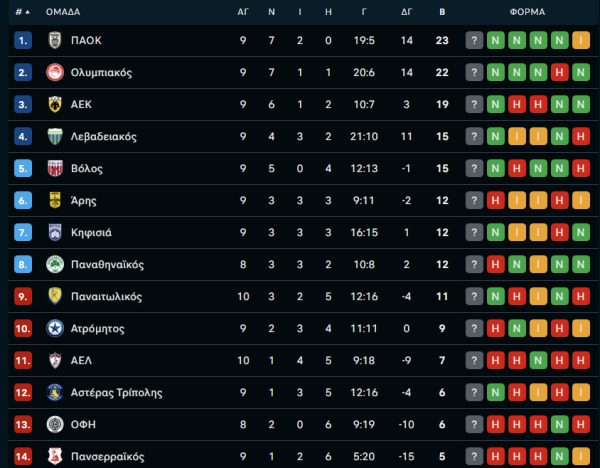 Πάμε να θυμηθούμε την βαθμολογία της Super League πριν τα αποψινά παιχνίδια της 10ης αγωνιστικής: