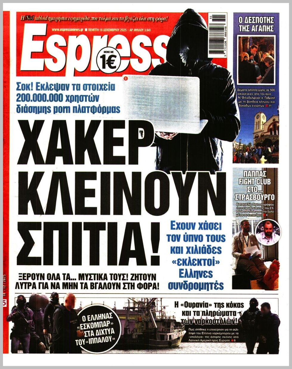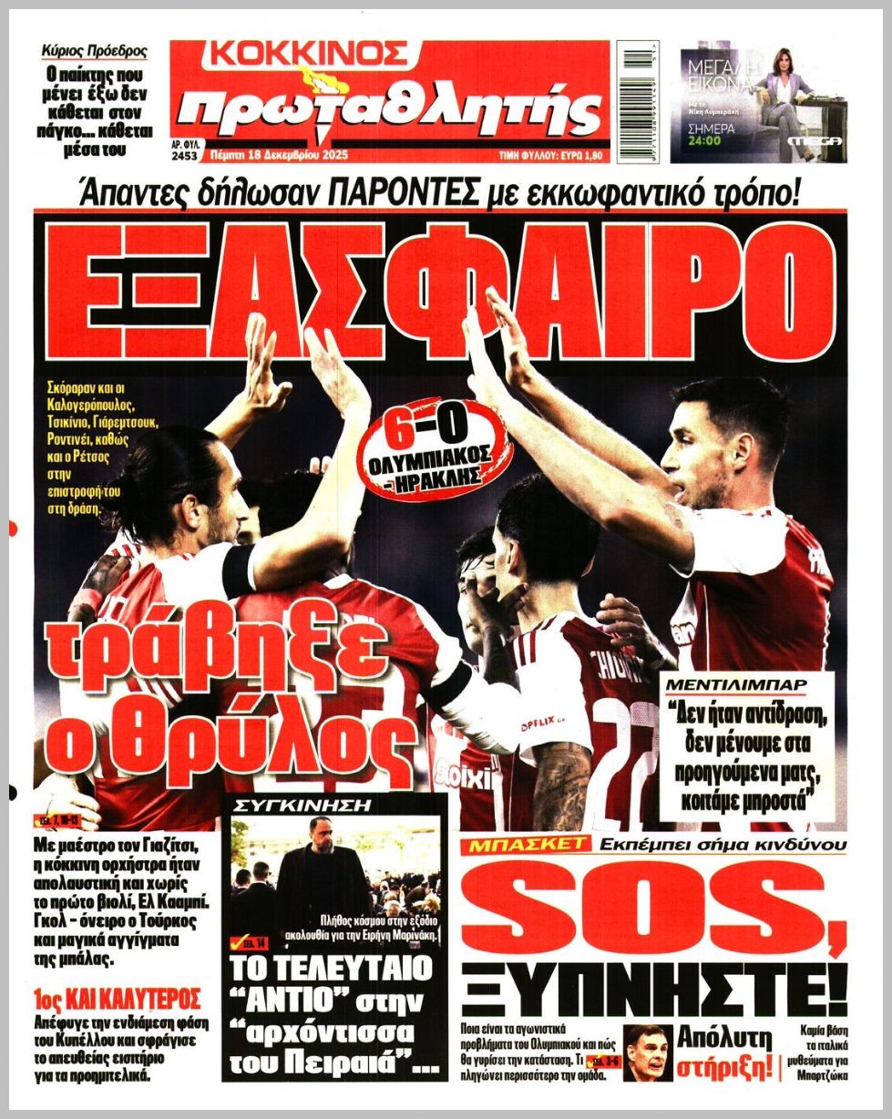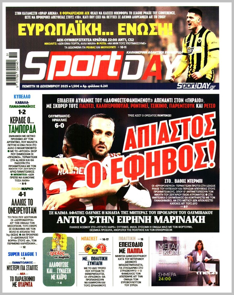 Τα πρωτοσέλιδα του ελληνικού τύπου για Πέμπτη 18 Δεκεμβρίου 2025