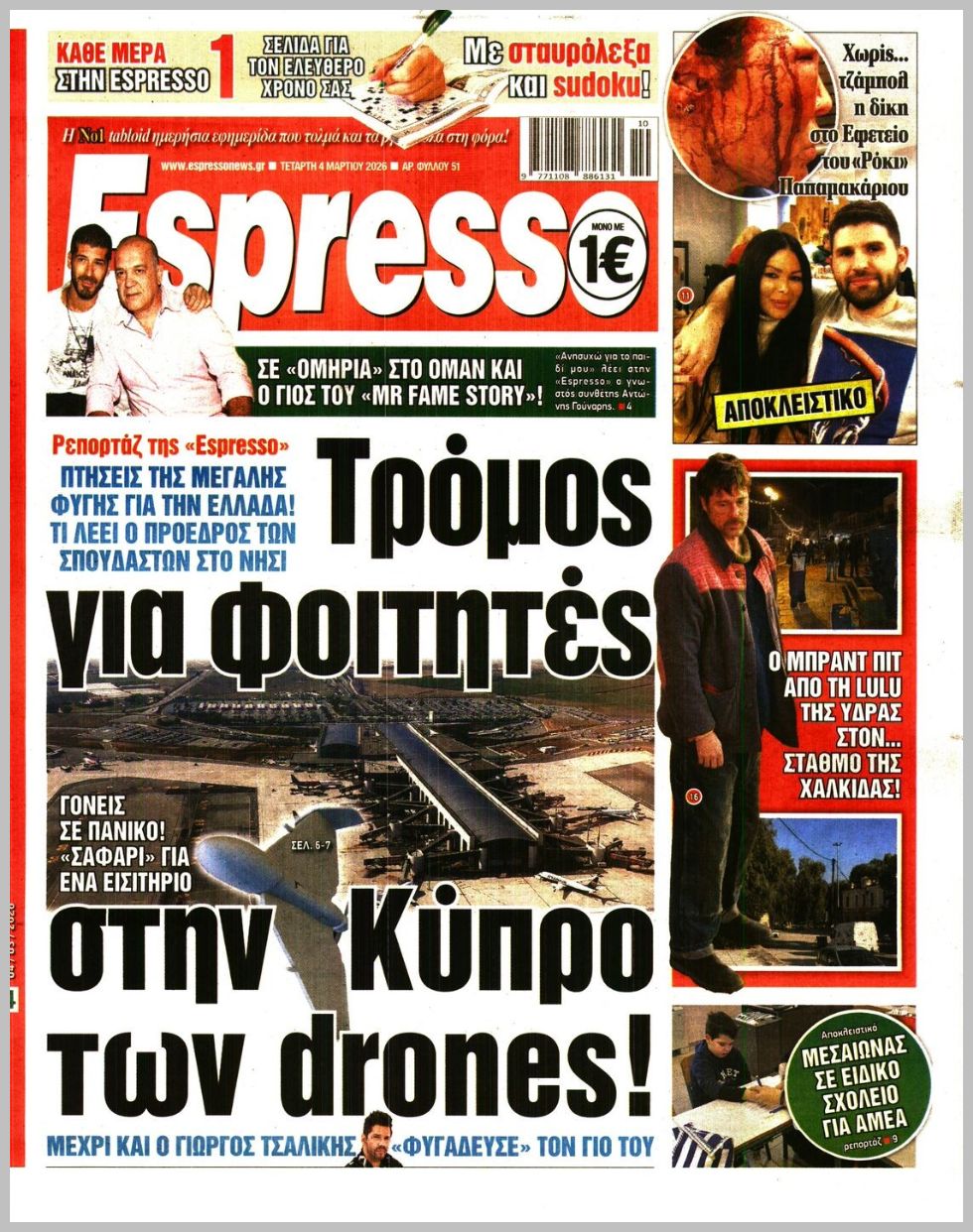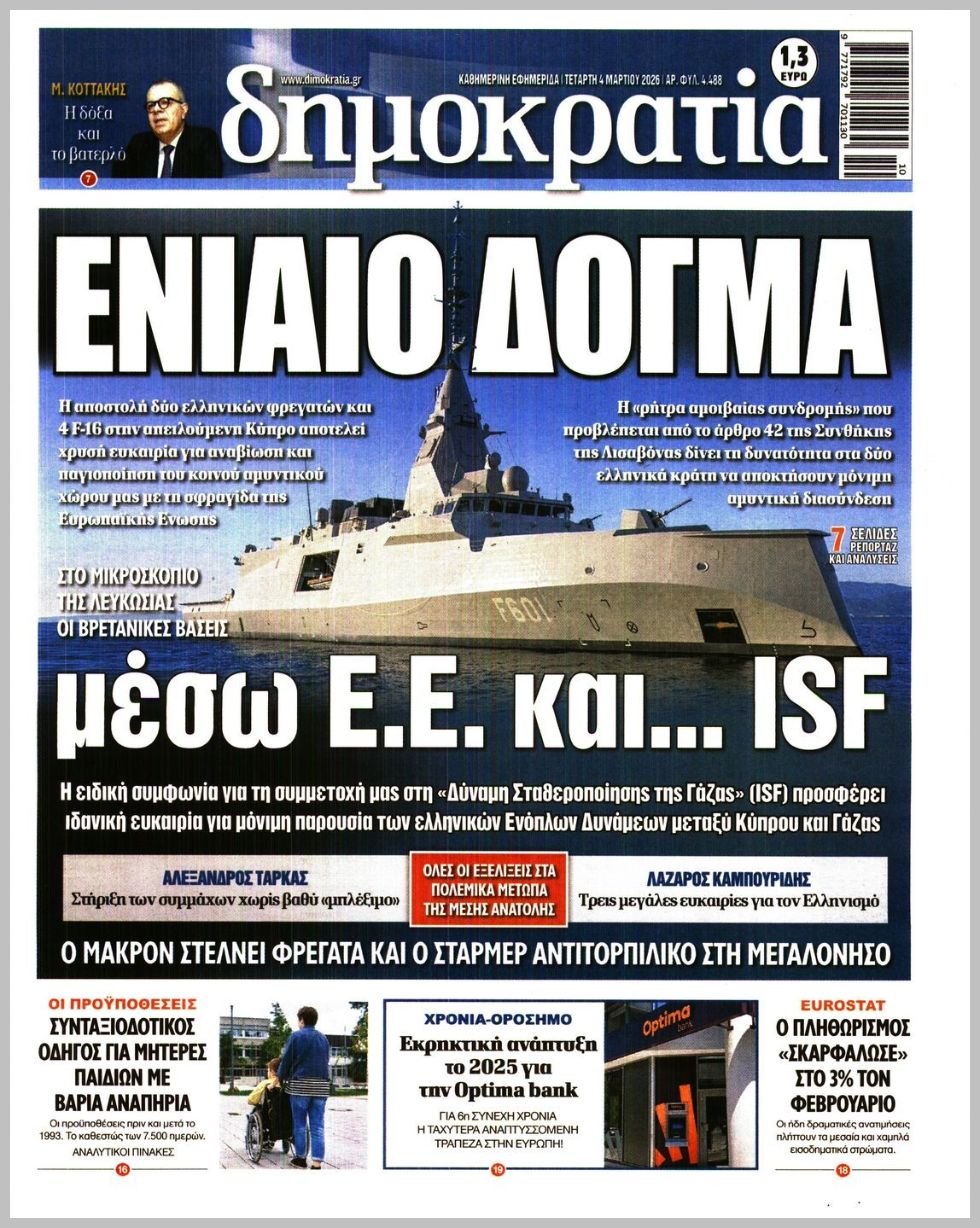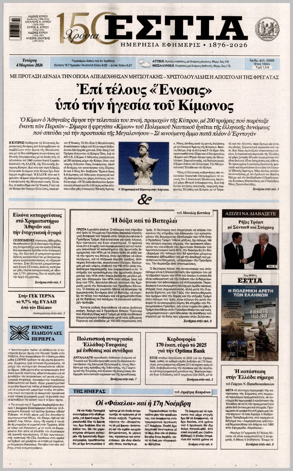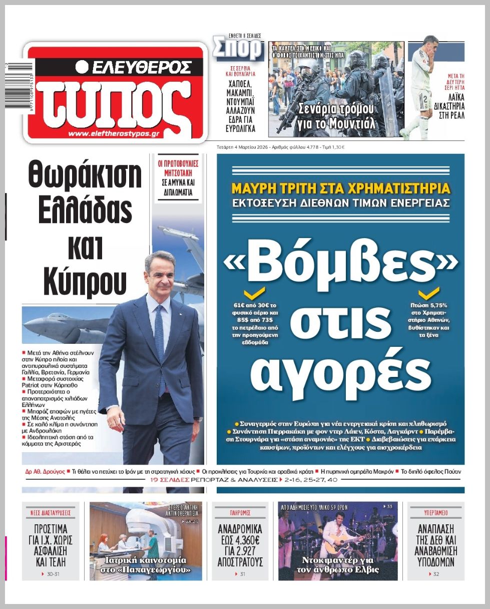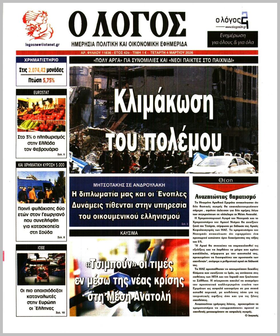 Τα πρωτοσέλιδα του ελληνικού τύπου για Τετάρτη 4 Μαρτίου 2026